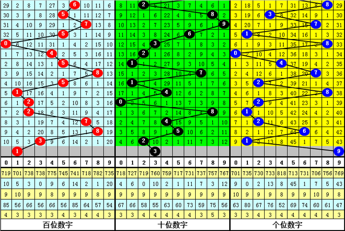 百十位差推荐:前三期百十位差分别开出3-3-1,本期预计百十位差走大,注意2出现。